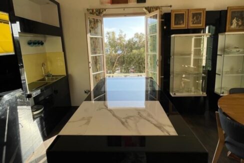 First floor SEAFRONT APARTMENT with lift – Hall, kitchen/living/dining with seafront balcony, 2/3 bedrooms (one presently equipped as study), bathroom, shower ensuite and back terrace with some country views. FULLY FURNISHED AND AIR CONDITIONED.
